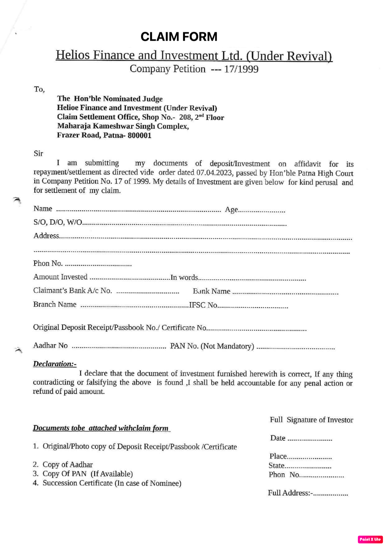 Claim Settlement Office,